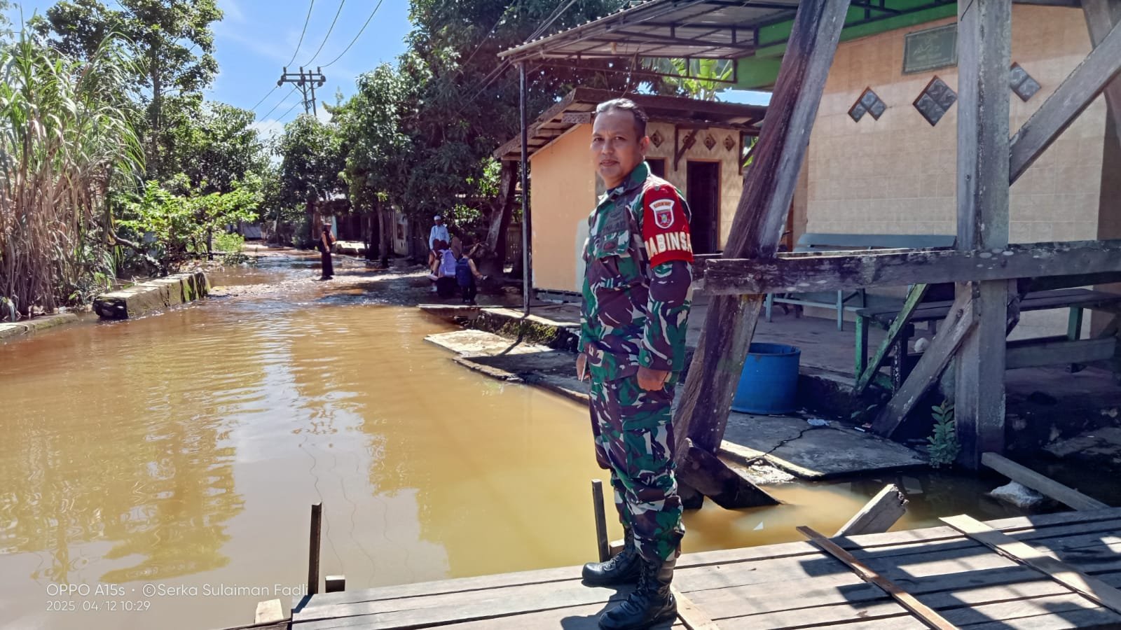 HULU SUNGAI UTARA – Hujan deras mengguyur Hulu Sungai dan sekitarnya, Babinsa Koramil 1001-06/Amuntai Utara Sertu Sulaiman Fadli bersama-sama dengan masyarakat melaksanakan pengecekan debit air Sungai Amuntai di Desa Cakeru, Kecamatan Amuntai Utara, Minggu (13/04/2025)