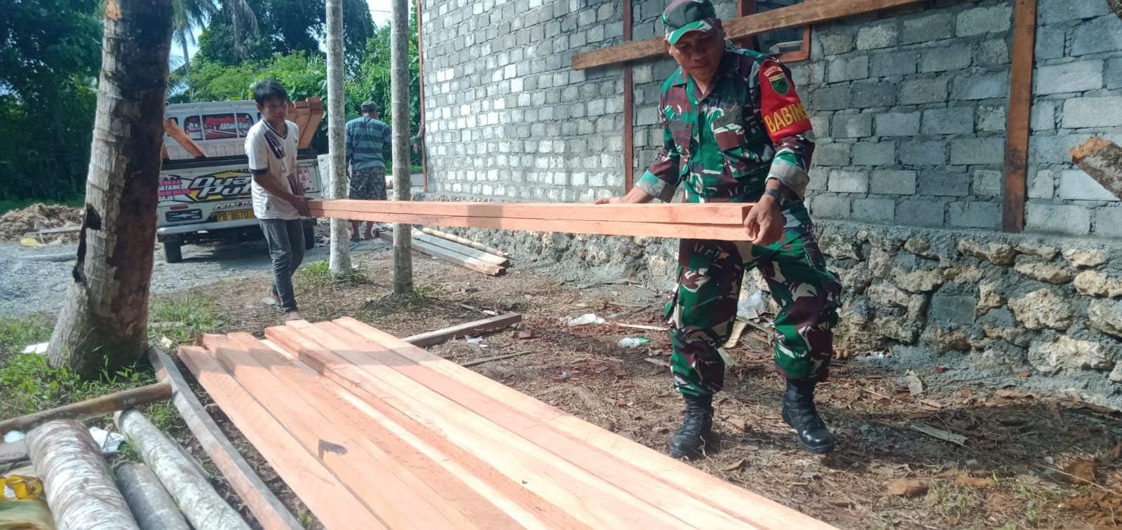 Sementara itu, pemilik rumah Bapak Markus menyampaikan terima kasih kepada Babinsa yang telah peduli membantu proses pembangunan rumahnya.