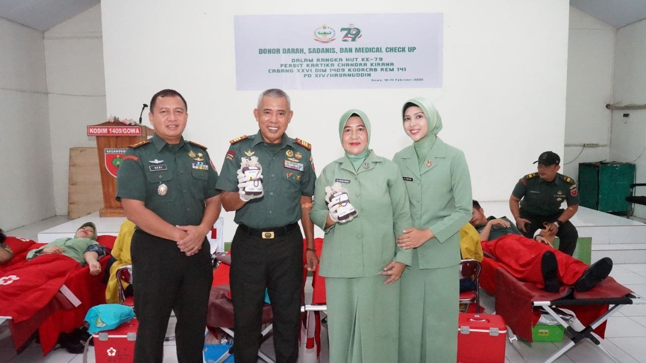 Gowa – Dalam rangka memperingati HUT Persit Kartika Chandra Kirana ke-79, Kodim 1409/Gowa menggelar bakti sosial donor darah, Sadanis dan Medical Check UP, Kegiatan ini dipimpin oleh Letkol Inf Heri Kuswanto, S.I.P (Dandim 1409/Gowa) yang berlangsung di Aula Makodim 1409/Gowa Jl. Sultan Hasanuddin Kel. Pandang – Pandang Kec. Somba Opu Kab. Gowa. Selasa (11/02/2025).