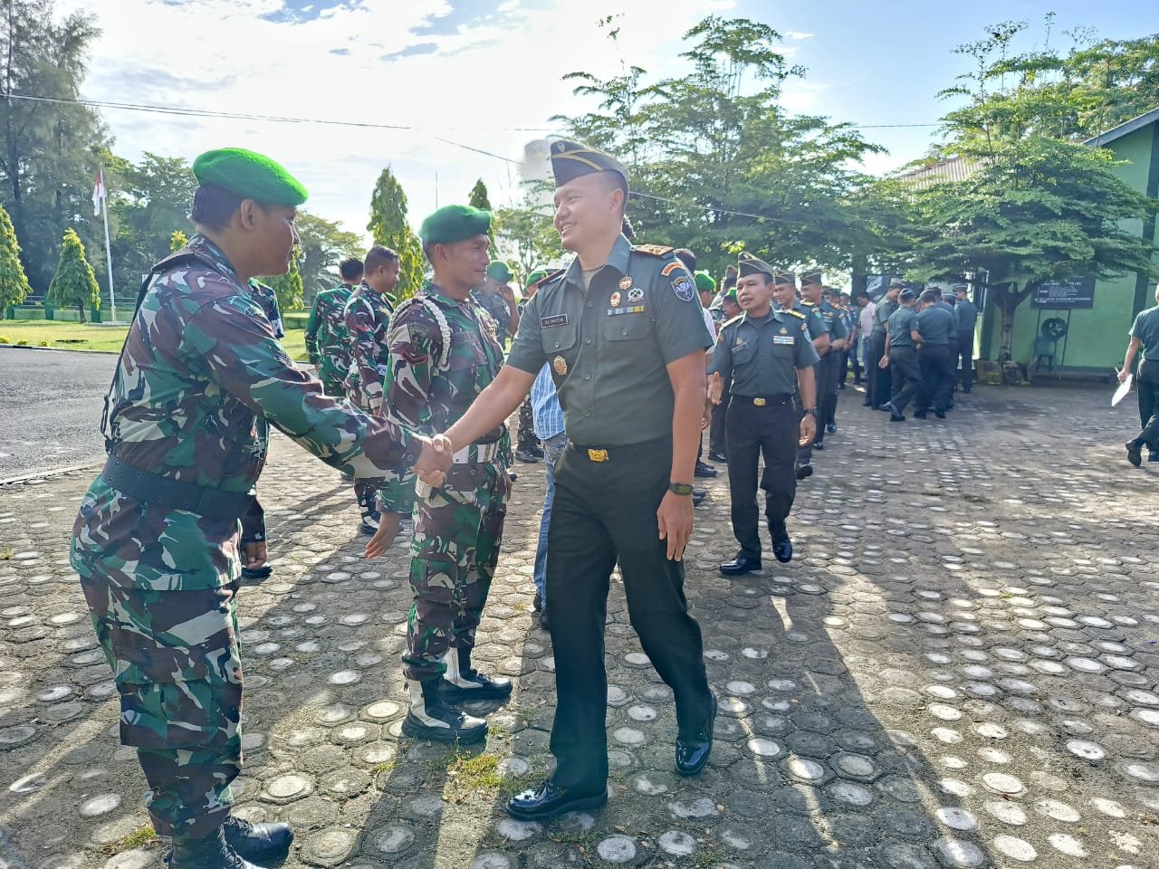 ACEH JAYA – Dandim 0114/Aceh Jaya, Letkol Inf Alimudin, S.E, memimpin Apel pagi sekaligus melaksanakan pengecekan personel yang kembali melaksanakan cuti lebaran di Makodim setempat, Selasa (08/04).