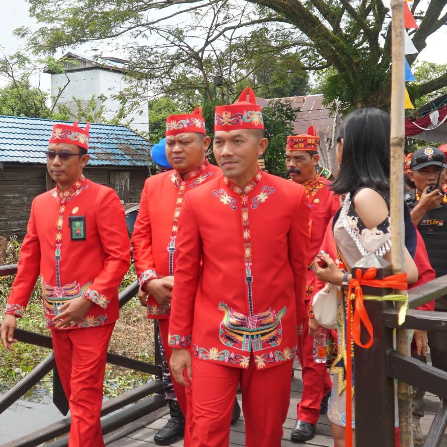 Kuala Kapuas – Dandim 1011/Klk Letkol Inf Pamungkas Army Saputro S.Sos.,S.Li.,M.Sc., bersama Ketua Persit KCK CAB XXXVII DIM 1011 Ny. Yohana Pamungkas army saputro Ikuti Acara Adat Laluhan atau “Perang Air”disertai launching Kapal Susur Sungai dimulai Start Pelabuhan Betang Sei Pasah, Finish Pelabuhan Danau Mare, Dalam rangka Hari Jadi Kota Kuala Kapuas ke-219, dan HUT Pemkab Kapuas ke-74,Selasa(22/04/2025).