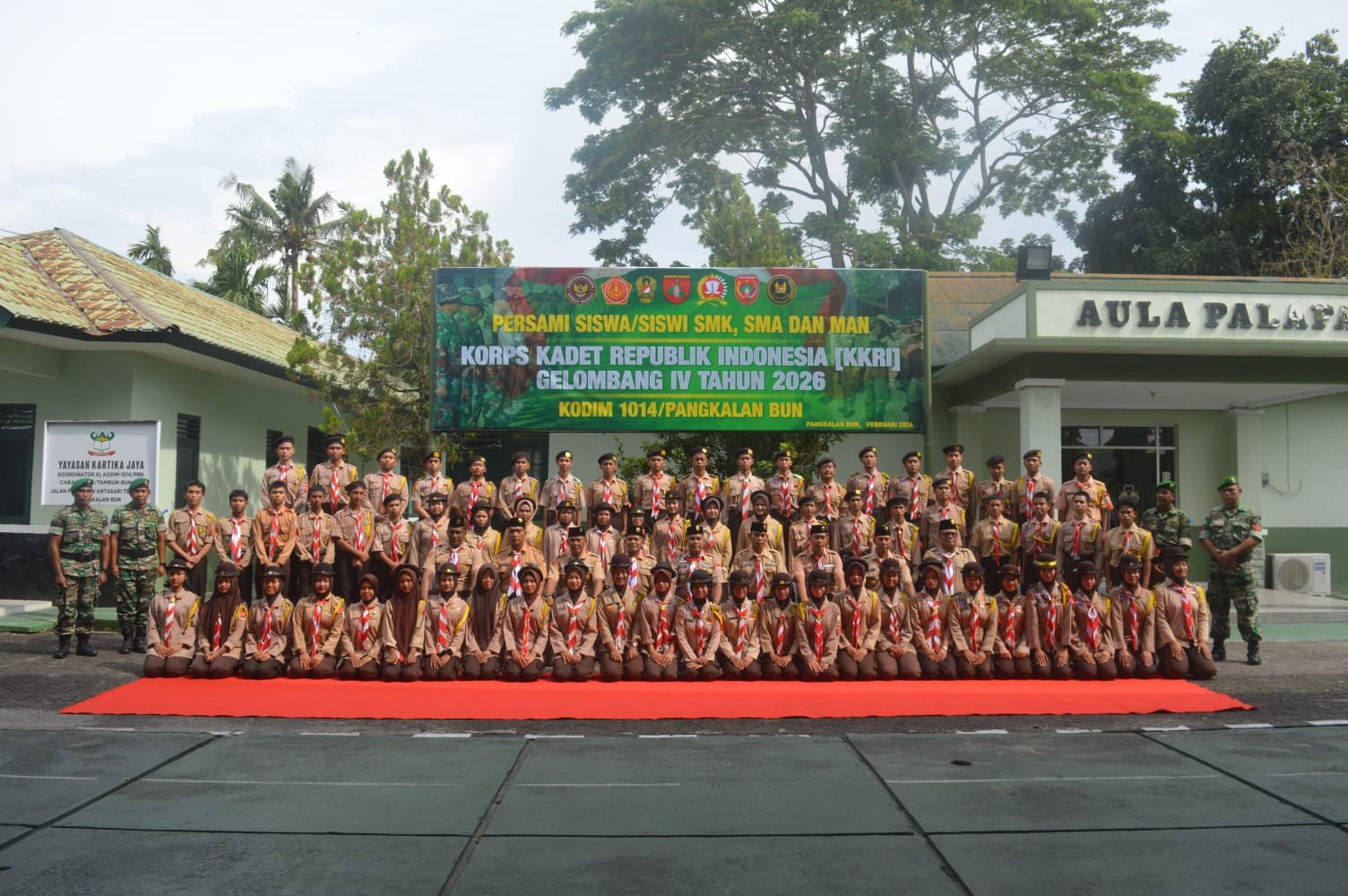Kotawaringin Barat – Upacara Persami untuk Siswa/Siswi SMK, SMA, dan MAN yang tergabung dalam Korps Kadet Republik Indonesia (KKRI) Gelombang IV Tahun 2026 dipimpin oleh Komandan Kodim 1014/Pangkalan Bun (Pbn), Letkol Inf Makin, S.Sos., M.I.P. Kegiatan ini dilaksanakan pada Jumat, 27 Februari 2026, pukul 13.15 WIB, di Makodim 1014/Pbn yang berlokasi di Jalan Pangeran Antasari No. 15, Kelurahan Raja, Kecamatan Arut Selatan, Kabupaten Kotawaringin Barat.