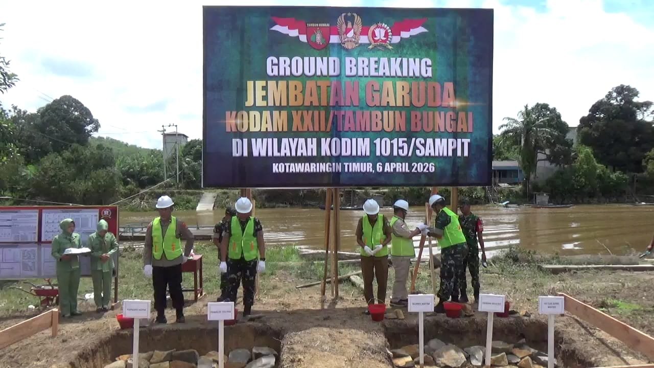 Kotawaringin Timur – Komandan Kodim 1015/Sampit, Letkol Inf Dwi Candra Setyawan, hadir dalam acara Ground Breaking pembangunan Jembatan Perintis Garuda XXII/Tambun Bungai di Dusun Tandang, Desa Barunang Miri, Kecamatan Parenggean, Kabupaten Kotawaringin Timur, pada Senin (6/4/2026). Kegiatan ini juga dihadiri oleh Danrem 102/Panju Panjung, Brigjen TNI Wimoko, S.E., M.Si, beserta Kasiter Kasrem 102/Pjg, staf ahli Bupati Kotim, serta perwakilan Kapolres Kotim dan tokoh masyarakat lainnya. Acara dibuka dengan video conference bersama Pangdam XXII/Tambun Bungai sebagai bagian dari pelaksanaan ground opening Jembatan Garuda secara serentak. Dalam sambutannya, Pangdam mengungkapkan bahwa proyek ini merupakan bagian dari program nasional yang telah mencapai tahap keempat, mencerminkan dukungan terhadap pengembangan infrastruktur di daerah. Pangdam menekankan pentingnya kolaborasi antara TNI, pemerintah daerah, dan masyarakat untuk membuka akses wilayah, meningkatkan mobilitas, serta memajukan ekonomi lokal, terutama di daerah yang terpencil. Danrem 102/Panju Panjung menambahkan bahwa terdapat delapan titik pembangunan jembatan di Kalimantan Tengah yang telah disetujui, dengan harapan penyelesaiannya dapat dilakukan dalam waktu satu bulan. Bupati Kotawaringin Timur melalui stafnya mengungkapkan dukungan pemerintah daerah terhadap proyek tersebut. Juga dilakukan pemotongan tumpeng, penyerahan bantuan sosial, peninjauan lokasi, dan peletakan batu pertama sebagai simbol dimulainya pembangunan. Dandim 1015/Sampit, Letkol Inf Dwi Candra Setyawan, menyatakan bahwa pembangunan Jembatan Perintis Garuda di wilayahnya, yaitu di Dusun Tandan dan Desa Tukang Langit, diharapkan dapat mengatasi isolasi wilayah serta mempermudah akses masyarakat dalam berbagai aktivitas, baik pendidikan, ekonomi, maupun sosial. “Kehadiran jembatan ini diharapkan mampu memberikan manfaat nyata bagi masyarakat dan meningkatkan konektivitas antar wilayah,” tuturnya.