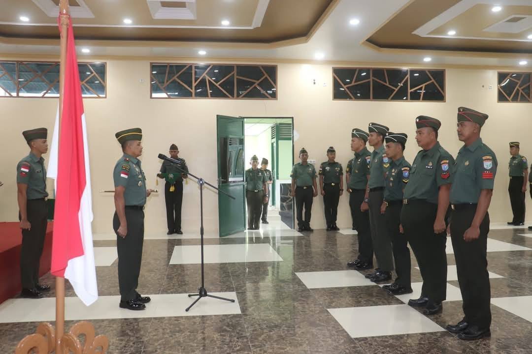 Komandan Kodim 1206/Putussibau, Letkol Inf Nasli S.Sos., sematkan pangkat ke Prajurit yang dinaikan satu tingkat lebih tinggi dari pangkat sebelumnya,kegiatan Korp Raport Kenaikan Pangkat Anggota Periode 1 April 2025 bertempat di Aula Alambhana Makodim 1206/Psb, Jln. Piere Tendean, Kec. Putussibau utara, Kab Kapuas Hulu. Rabu (09/04/25).