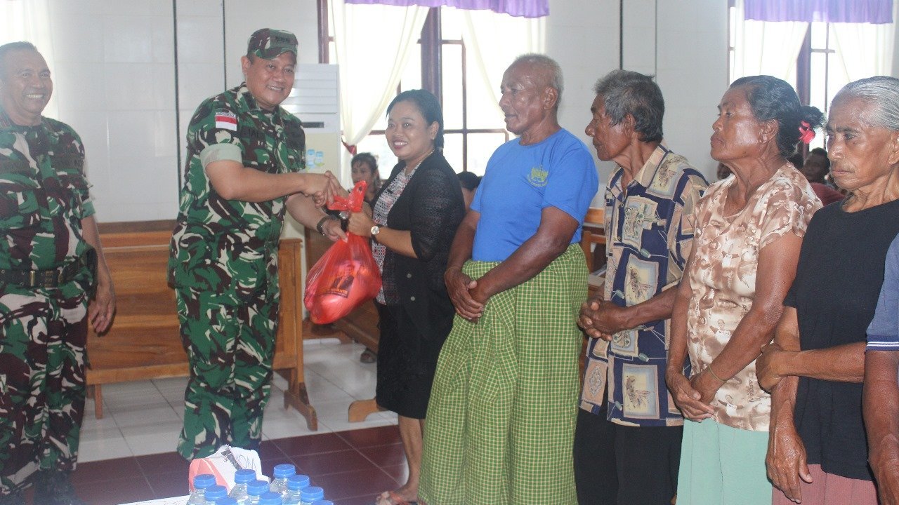 NTT-KUPANG – Dandim 1604/Kupang, Kolonel Inf Wiwit Jalu Wibowo, secara simbolis menyerahkan bantuan sembako kepada korban banjir rob di Pesisir Pantai Desa Tablolong, Kecamatan Kupang Barat, Kabupaten Kupang. Penyerahan bantuan ini dilakukan di GMIT Jemaat Amanau Tablolong dengan dihadiri sekitar 140 penerima bantuan. Hadir juga dalam acara tersebut Staf Khusus Anggota DPR RI Komisi I, Bapak Sokan, Sekretaris BPBD Kabupaten Kupang, Pjs. Danramil 1604-06/Batakte Letda Inf. Alex Makholory, Camat Kupang Barat Yusak A. Ullin, S.Sos., serta Kades Tablolong Zet Nggadas. Sealas (11/02/2025).