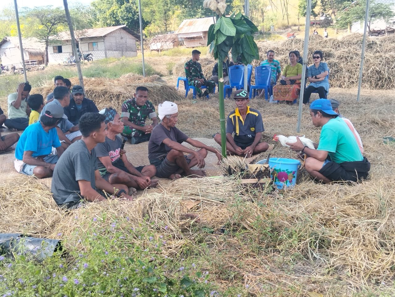 SUMBA TENGAH — Wujudkan kemanunggalan TNI dan rakyat, Komandan Kodim 1613/Sumba Barat Letkol Inf Ignasius Hali Sogen, S.E., M.Han., ikut serta dalam kegiatan perontokan padi secara tradisional bersama masyarakat di Desa Manuwolu, Kecamatan Mamboro, Kabupaten Sumba Tengah, Rabu (9/7/2025).
