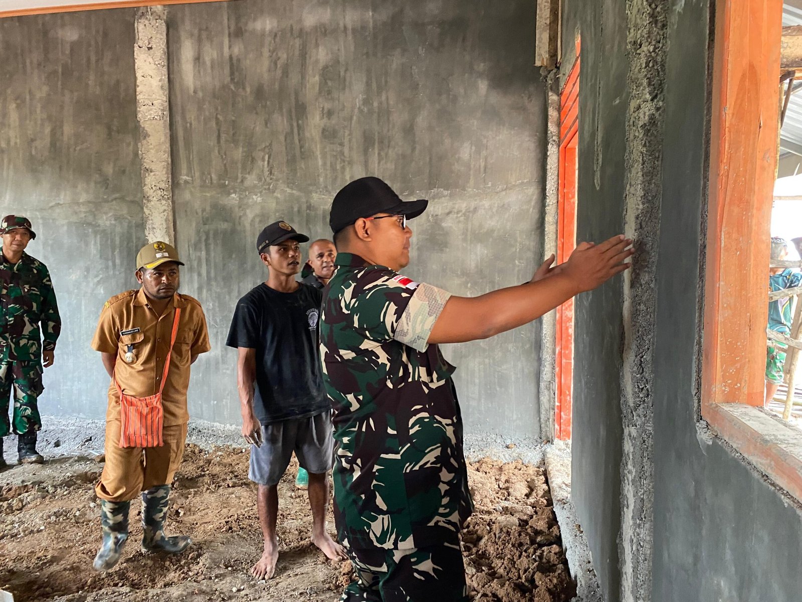 Dengan teliti, Dandim memeriksa setiap bagian bangunan yang sedang dalam proses penyelesaian. Ia didampingi staf dan Danramil setempat untuk mengevaluasi struktur dinding, instalasi atap, serta kualitas finishing. Kegiatan ini tidak hanya bersifat formalitas, melainkan merupakan langkah nyata untuk memastikan bahwa mutu bangunan sesuai dengan standar yang ditetapkan.