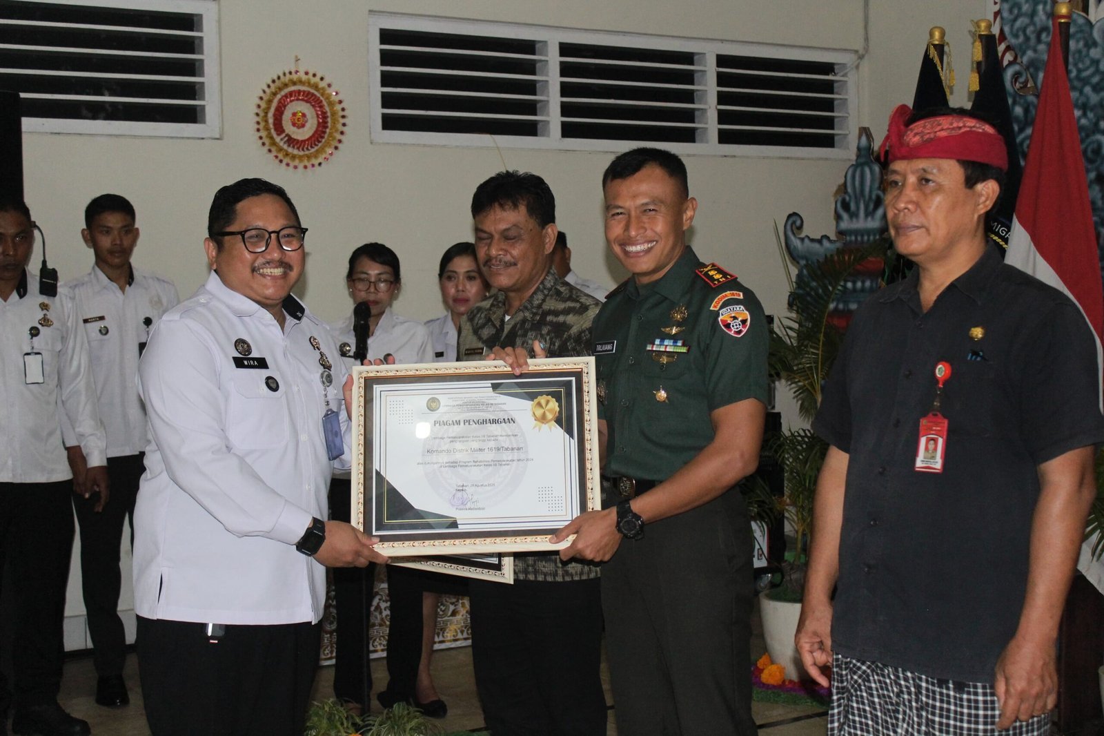 Tabanan – Dandim 1619/Tabanan Letkol Inf Trijuang Danarjati, S.A.P., M.I.P., menghadiri kegiatan Pembukaan Rehabilitasi Pemasyarakatan, Pelatihan Kemandirian bidang Jasa Laundry dan Perikanan, serta peluncuran maskot dan tata nilai baru Lapas Kelas IIB Tabanan Tahun 2025, Kamis 28/8/2025.