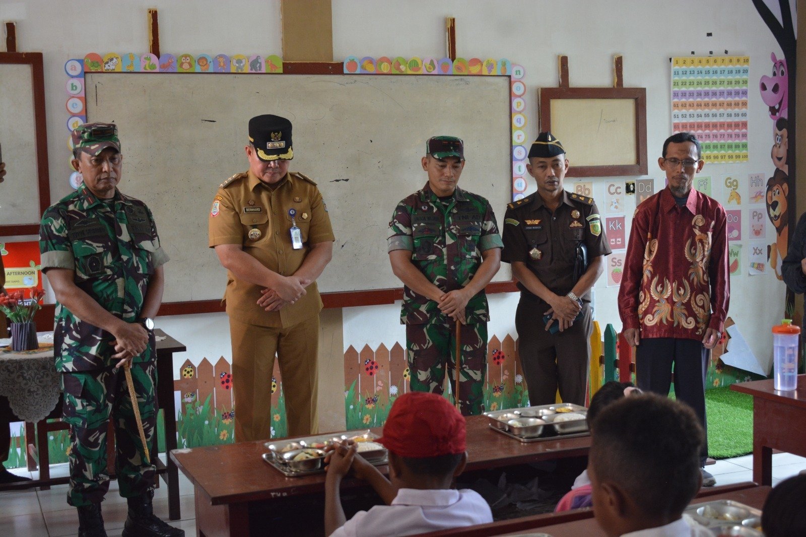 Sorong. Papua Barat Daya.- Komandan Kodim 1802/Sorong Letkol Czi Angga Wijaya,.S.IP,.MA mendampingi Komandan Korem 181/PVT Brigjen TNI Totok Sutriono S.sos.,M.M Dalam rangka Peninjauan Makana Bergizi Gratis atau Satuan Pelayanan Pemenuhan Gizi Wilayah Kodim 1802/Sorong. Bertempat di SD Negeri 12 jalan Danau Tigi Rufei Kelurahan Rufei Distrik Sorong Barat Kota Sorong Provinsi Papua Barat daya. Senin (13/01/2025).