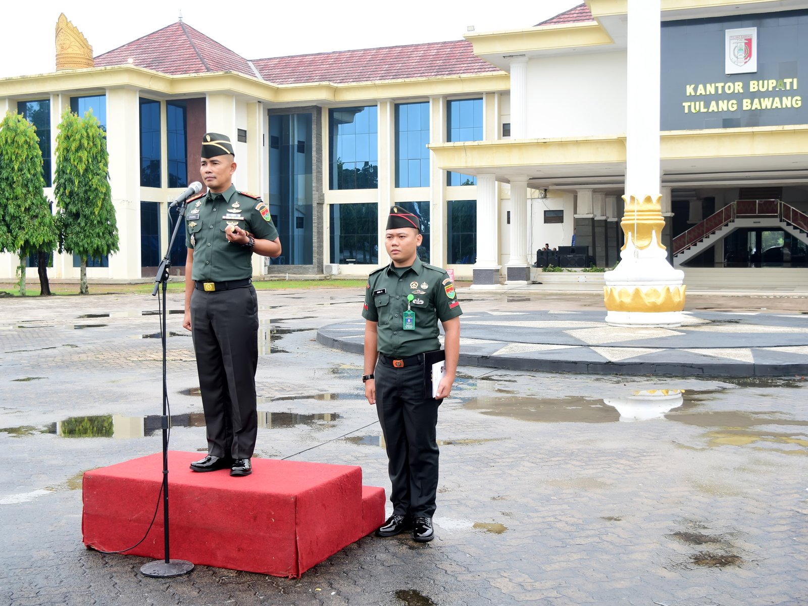 Menggala, Tulang Bawang – Pada hari Senin, 19 Januari 2026, upacara bendera bulanan diadakan di halaman Kantor Pemerintah Daerah Kabupaten Tulang Bawang. Upacara tersebut dipimpin oleh Komandan Distrik Militer (Dandim) 0426/Tulang Bawang, Letkol Inf Syurya Dharma, yang bertindak sebagai Inspektur Upacara (Irup). Acara ini dihadiri oleh berbagai elemen, termasuk Aparatur Sipil Negara (ASN), pejabat struktural Pemkab, serta unsur Forum Komunikasi Pimpinan Daerah (Forkopimda).