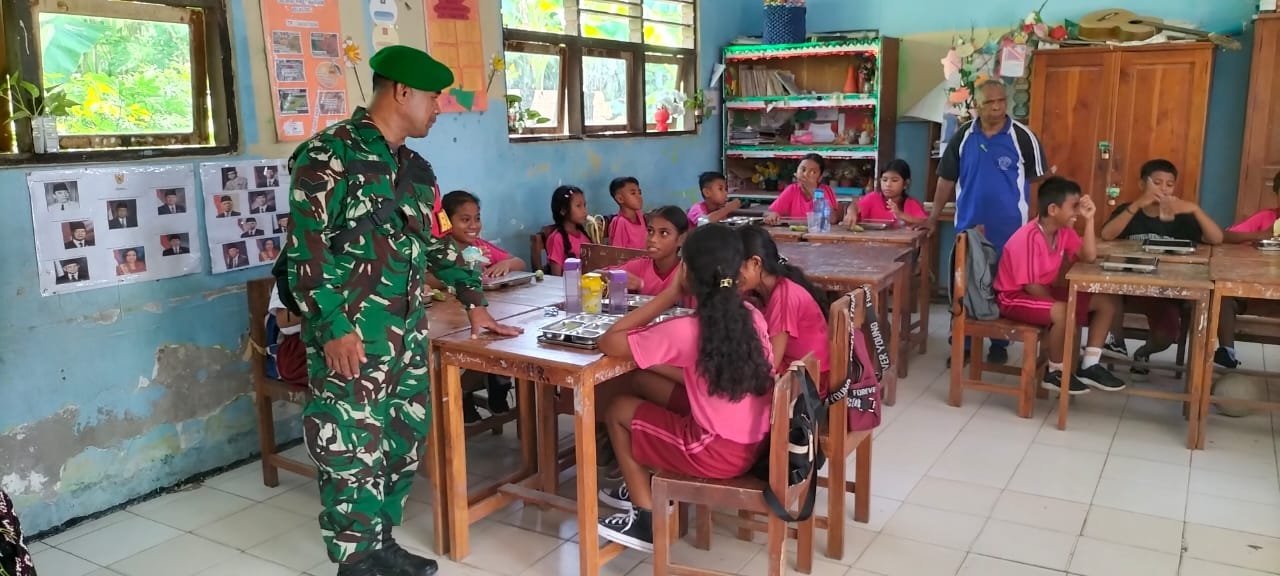 Danramil 01 Laksanakan Pemantauan Pembagian Makan Gratis Bergizi di SD GMIT Manumuti
