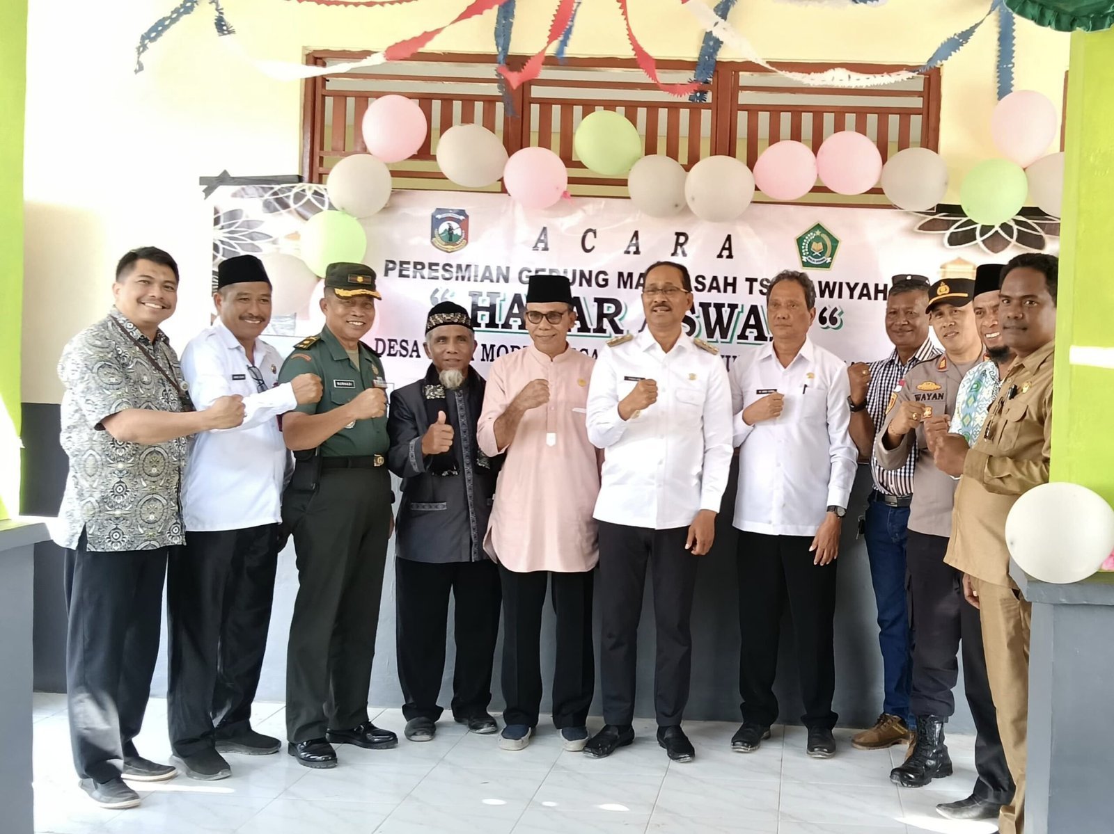 Acara peresmian berlangsung khidmat dan dihadiri oleh jajaran pejabat daerah, tokoh agama, tokoh masyarakat, serta para guru dan siswa MTs Hajar Aswad.
