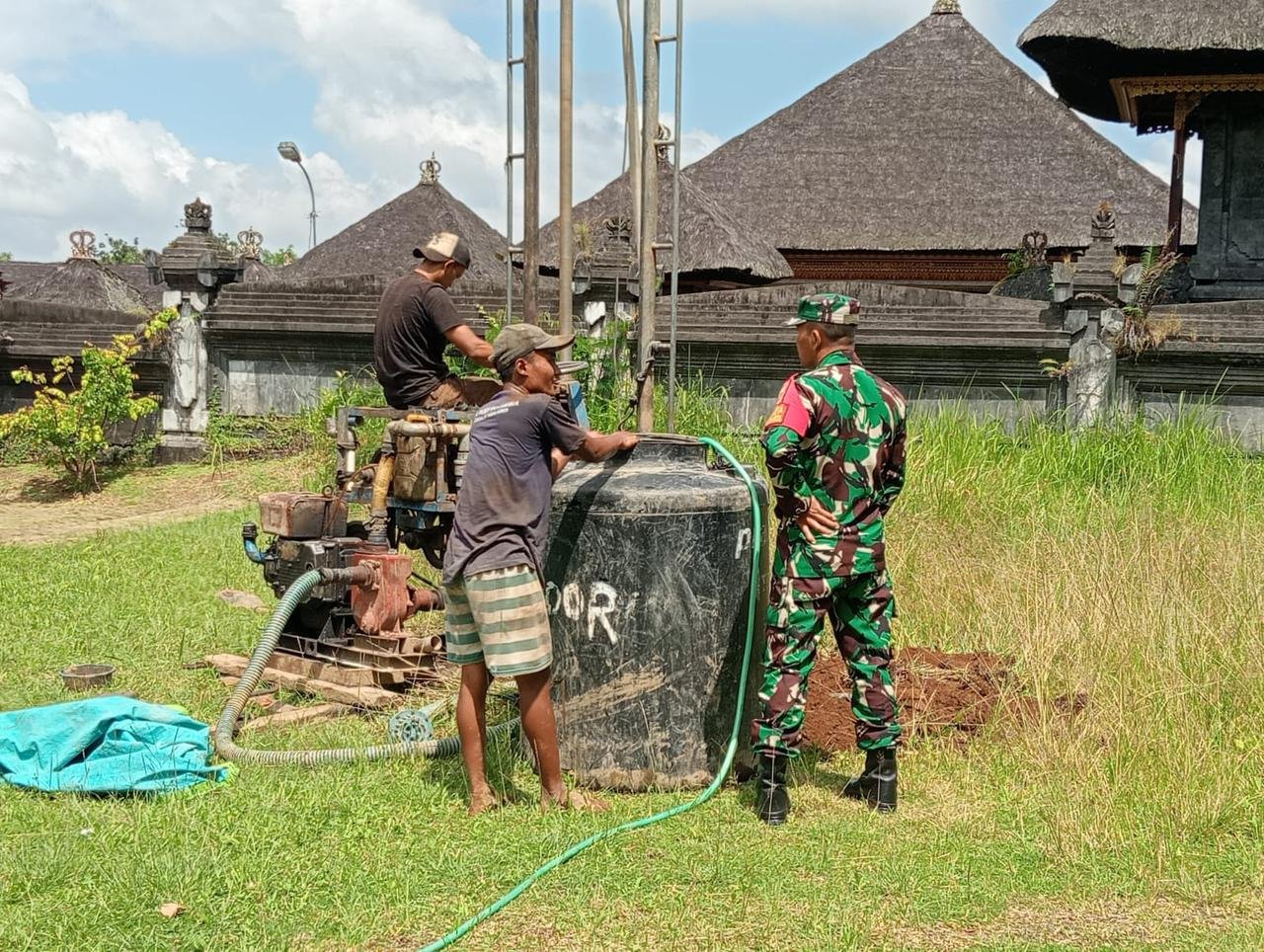 Bangli – Dalam upaya meningkatkan ketersediaan air bersih bagi masyarakat, Danramil 1626-01/Bangli, Kapten Cke I Komang Gita, bersama Babinsa Desa Kayubihi, Serka I Wayan Suastika, melaksanakan pendampingan serta pemantauan pembuatan sumur bor yang merupakan bantuan dari Danrem 163/WSA. Kegiatan ini berlangsung di Pura Puseh Desa Kayubihi, Kecamatan Bangli, pada Rabu (1/4/26).