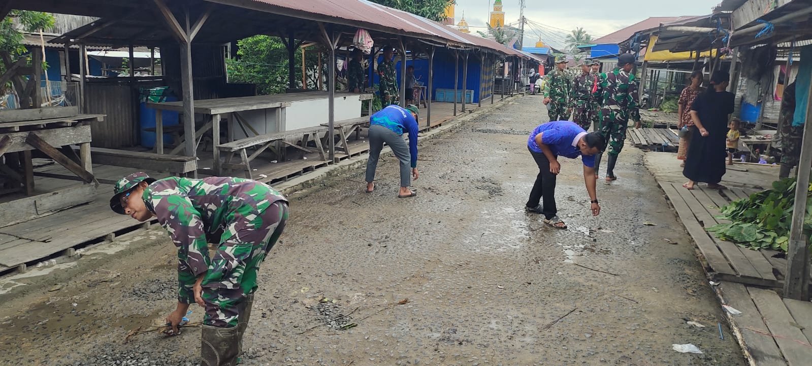 Barito Kuala — Dalam rangka meningkatkan kebersihan lingkungan dan mencegah potensi banjir serta penyebaran penyakit, Koramil 1005-02/Kuripan melaksanakan kegiatan karya bakti (karbak) terpadu berupa pembersihan pasar, selokan, dan penanaman pohon di wilayah sekitar Koramil. Kegiatan ini berlangsung pada Jumat, 23 Januari 2026, dengan melibatkan unsur TNI, aparat desa, dan masyarakat setempat.