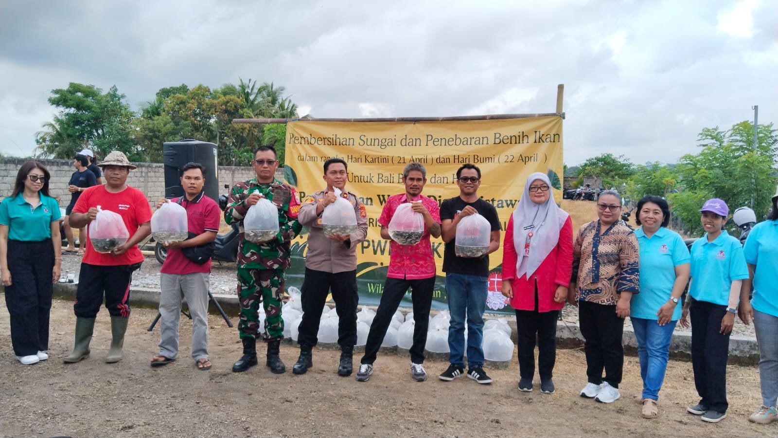 Tabanan – Dalam rangka memperingati Hari Kartini dan Hari Bumi, Danramil 1619-04/Kediri, Anak Agung Putrawan, berpartisipasi dalam kegiatan pembersihan sungai dan penebaran 10.000 benih ikan nila di Subak Senapahan, Desa Banjar Anyar, Kecamatan Kediri, pada Rabu (2/4/2026). Kegiatan ini diselenggarakan oleh Persekutuan Wanita Dian Kristawati Gereja Protestan Bali dan melibatkan unsur Forkopimcam Kediri, tokoh masyarakat, serta warga setempat.