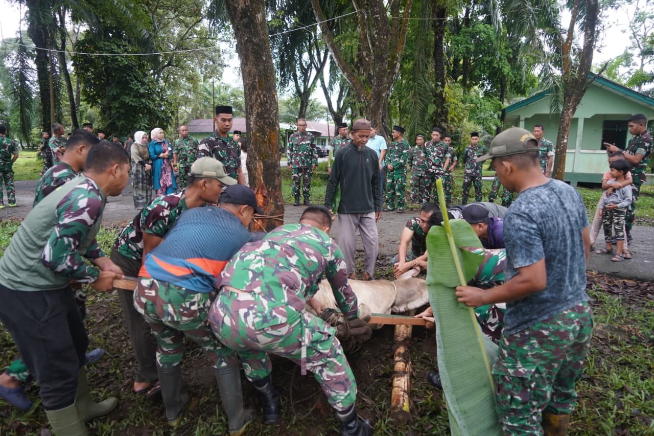 Sejumlah hewan ternak disembelih dan dagingnya dibagikan kepada prajurit, PNS Korem 012/TU, serta masyarakat yang berhak menerima. Proses penyembelihan dilakukan sesuai syariat Islam dengan memperhatikan aspek kebersihan dan ketertiban.