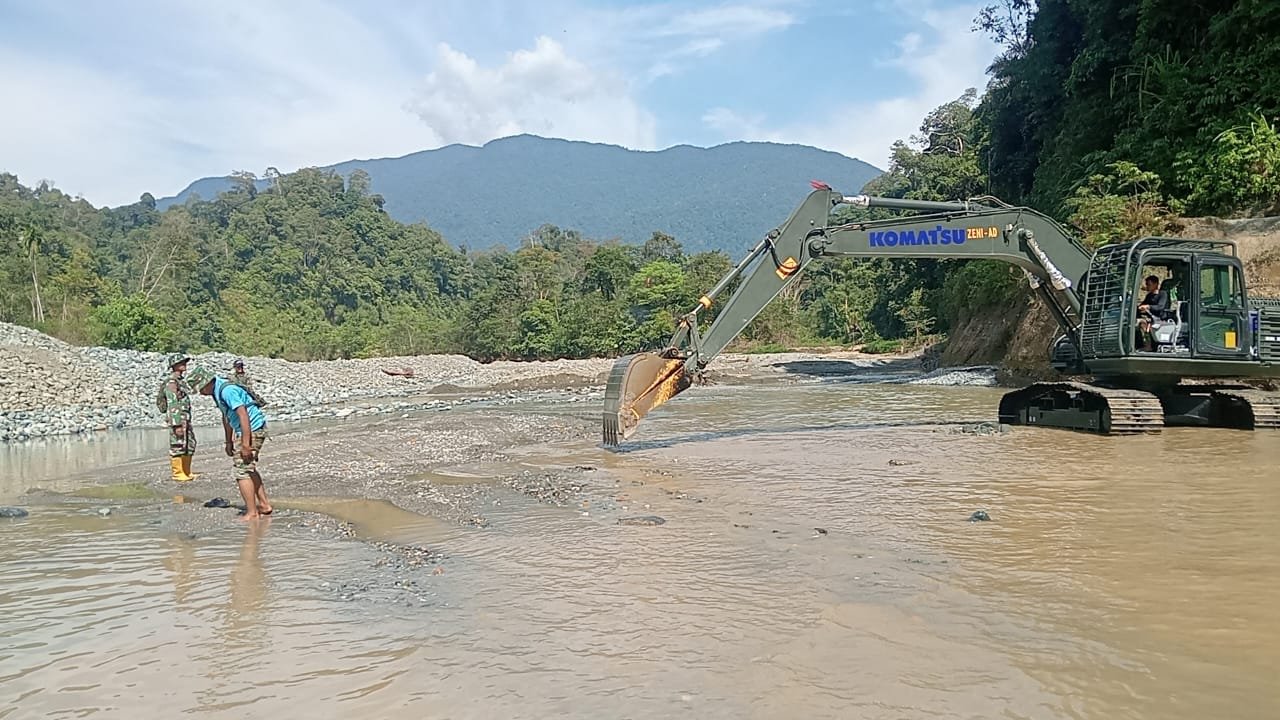Pengerjaan jalan yang terdampak banjir tersebut melibatkan alat berat yang bekerja secara maksimal di lapangan. Prajurit Korem 012/TU bersama unsur terkait bahu-membahu melakukan penimbunan, perataan badan jalan, serta penguatan struktur agar akses jalan dapat segera dilalui dengan aman.