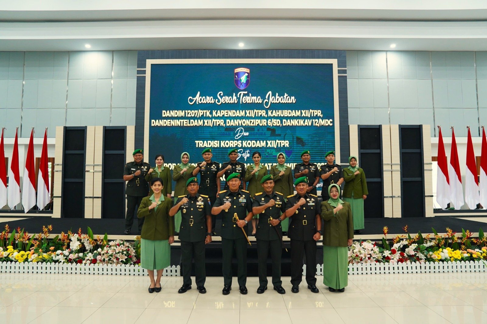 Kapendam XII/Tpr Kolonel Arm Fajar Catur Prasetyo, S.E., M.M., kepada Kolonel Inf Eko Wardono. Dandeninteldam XII/Tpr dari Letkol Inf Abu Hanifah, S. H., M.I.P., kepada Mayor Inf Zulkarnaen Galib.