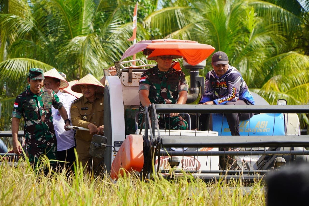 Danrem 121/Abw Brigjen TNI Purnomosidi, S.I.P., M.A.P., M.Han., dampingi Panhdam XII/Tpr bersama Pemerintah Provinsi Kalimantan Barat dan Forkopimda Kab. Sambas laksanakan kegiatan Vicon Panen Raya Padi Serentak Bersama Bapak Presiden RI yang digelar di Persawahan Masyarakat Dusun Lestari, Desa Mensere, Kec. Tebas, Kab Sambas, Senin (07/04/25).