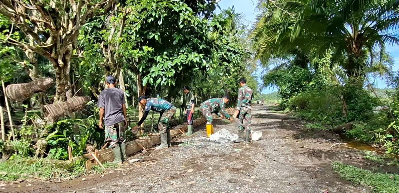 Di tengah suasana bulan suci Ramadhan, ibadah puasa tidak menyurutkan tekad dan semangat Tim Satgas TMMD bersama warga untuk menuntaskan pembangunan infrastruktur desa. Dengan penuh dedikasi, personel Satgas bahu-membahu melakukan pengecoran talud yang berfungsi menahan timbunan tanah serta mencegah potensi longsor dan erosi badan jalan.
