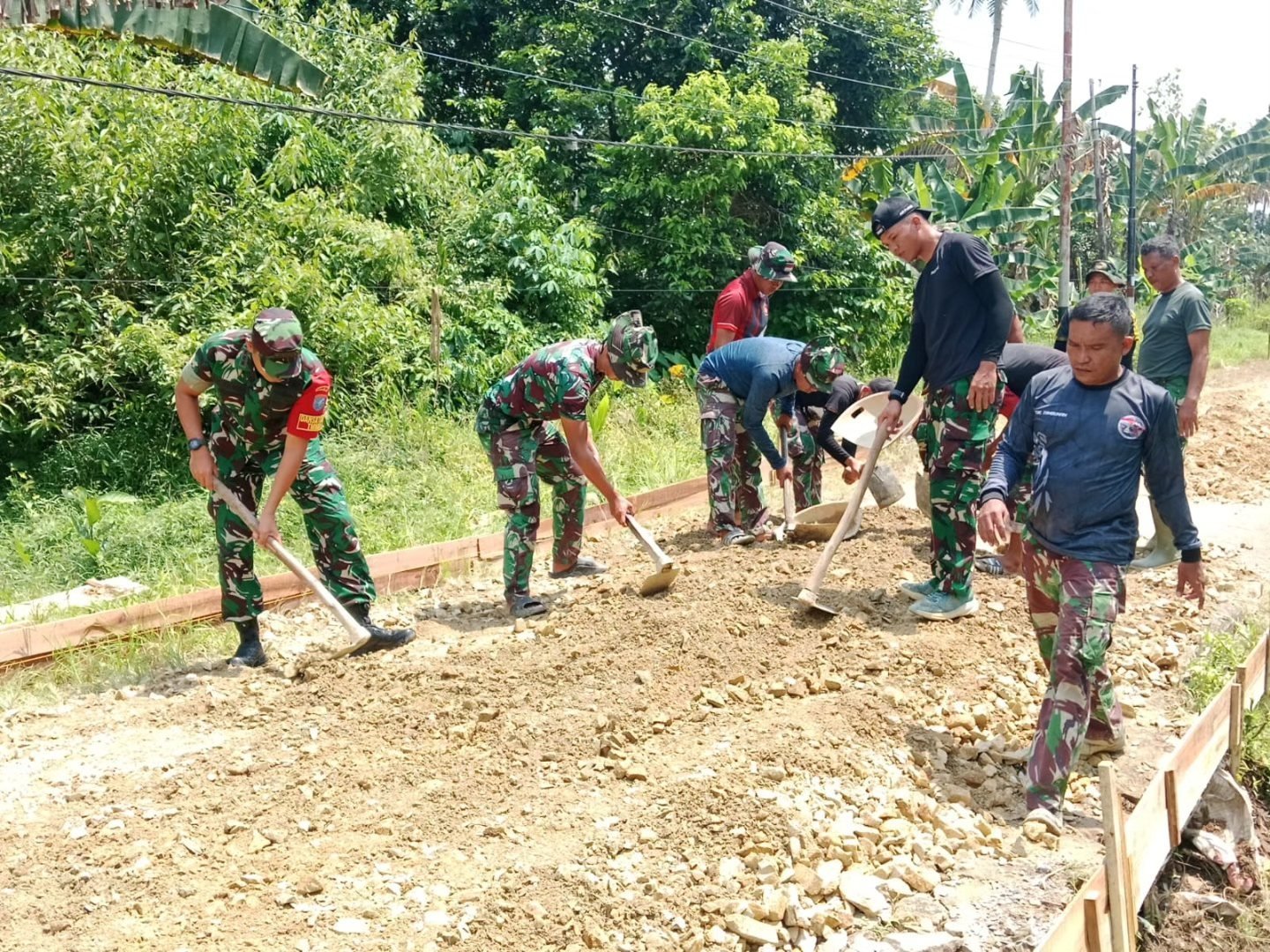“Kita tidak hanya meninjau, tapi juga ikut bekerja bersama anggota dan masyarakat. Inilah wujud kebersamaan yang menjadi ruh TMMD,” ujar Kolonel Robbi di sela kegiatan.