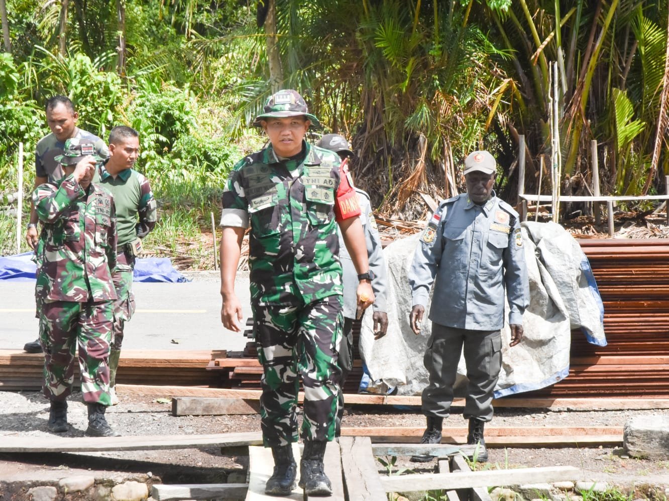 Dansatgas TMMD ke-124 Kodim 1710/Mimika, Letkol Inf Slamet Wijaya, M. S. Sos., M. Han., M.A. turun langsung ke lokasi untuk meninjau proses pembangunan rumah. Kehadiran Dansatgas di tengah-tengah anggota dan warga menunjukkan kepedulian serta pengawasan langsung terhadap kelancaran dan kualitas pelaksanaan program. Senin, (12/5/2025).