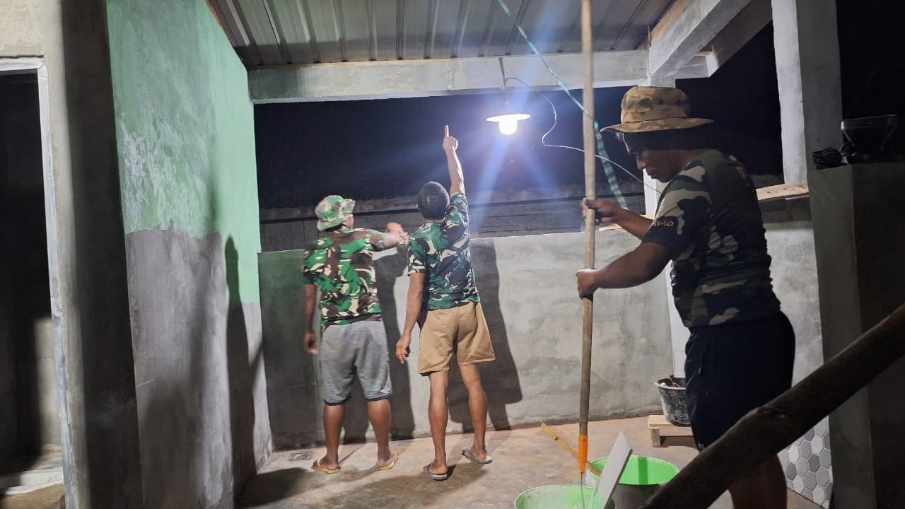 Sebanyak lima anggota Satgas dan dua warga terlibat langsung dalam kegiatan tersebut. Pekerjaan difokuskan pada finishing bangunan, seperti plamir, pengecatan dinding, dan pemasangan lisplang atap.