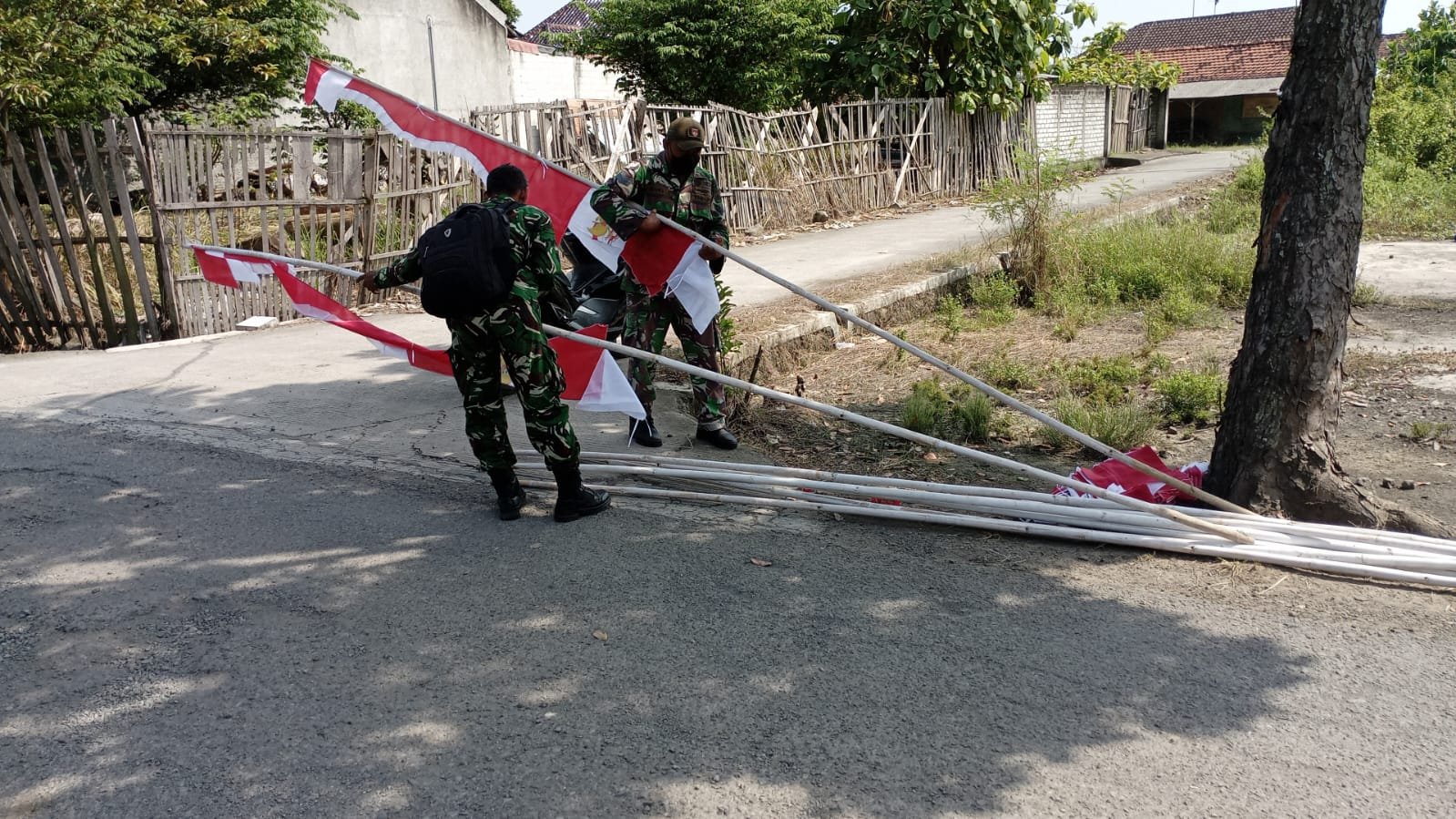 Desa Godo Pati Hiasi Jalan dengan Bendera Merah Putih Menyambut TMMD dan Sedekah Bumi