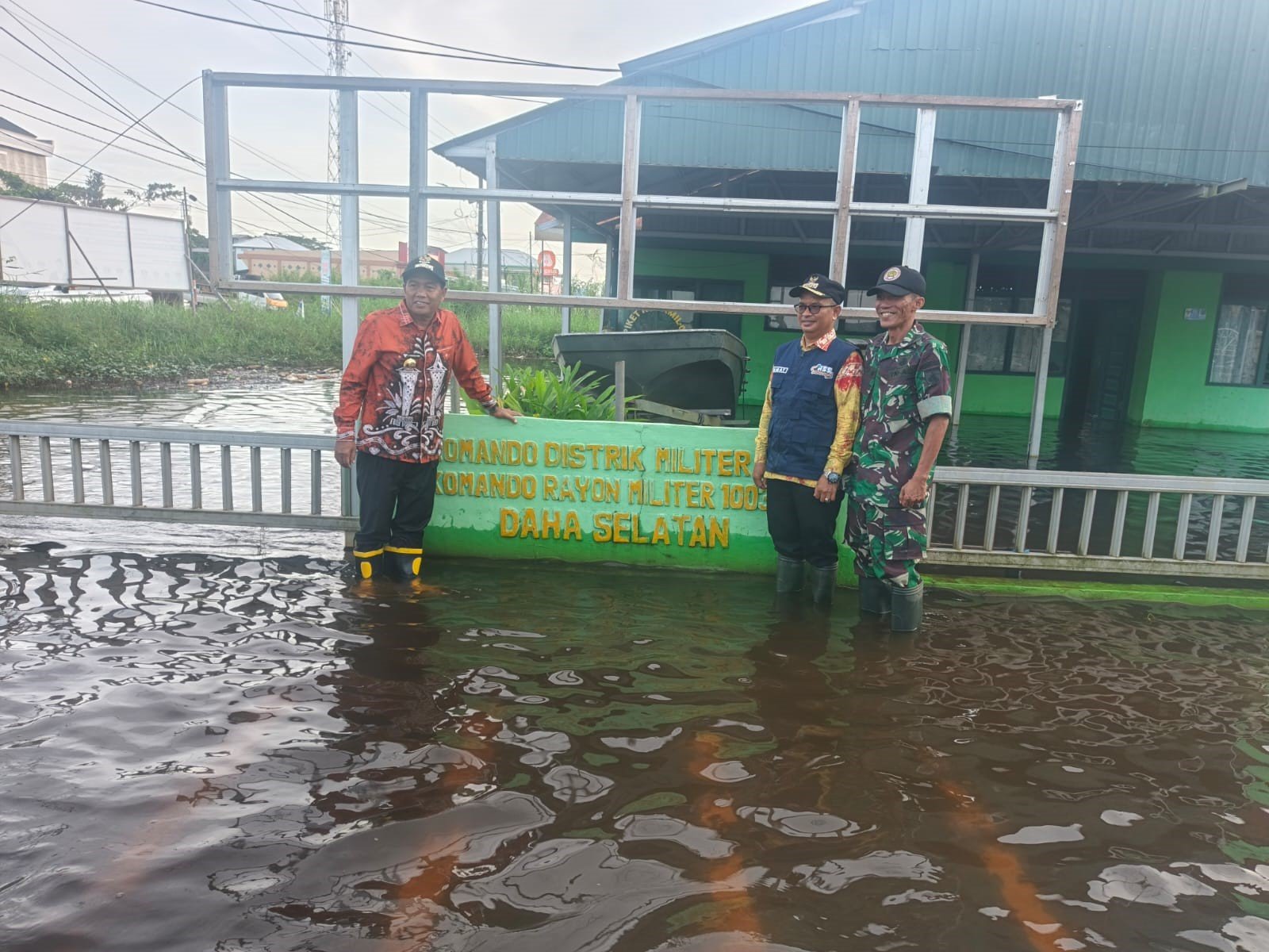 HULU SUNGAI SELATAN – Danramil 1003-08/Daha Selatan Kapten Inf Abdi Brawijaya dampingi Bupati Hulu Sungai Selatan (HSS) H. Syafrudin Noor, SE., S.Sos., meninjau sekaligus bertatap muka dengan masyarakat yang terdampak genangan air akibat meluapnya aliran Sungai Amandit yang tidak mampu menampung debit air hujan diwilayah Kecamatan Daha Selatan kususnya Desa Tumbukan Banyu. Jumat (9/1/26)