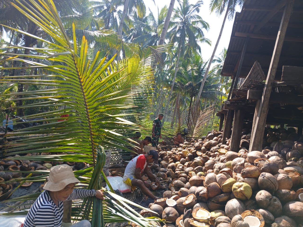 “Dari proses pengumpulan kelapa dari kebun hingga pengupasan kelapa dan proses pengasapan, Babinsa turut membantu. Dengan tujuan mendorong para petani Kopra dalam peningkatan penghasilan serta menumbuhkan keharmonisan Babinsa bersama warganya,” ungkapnya.