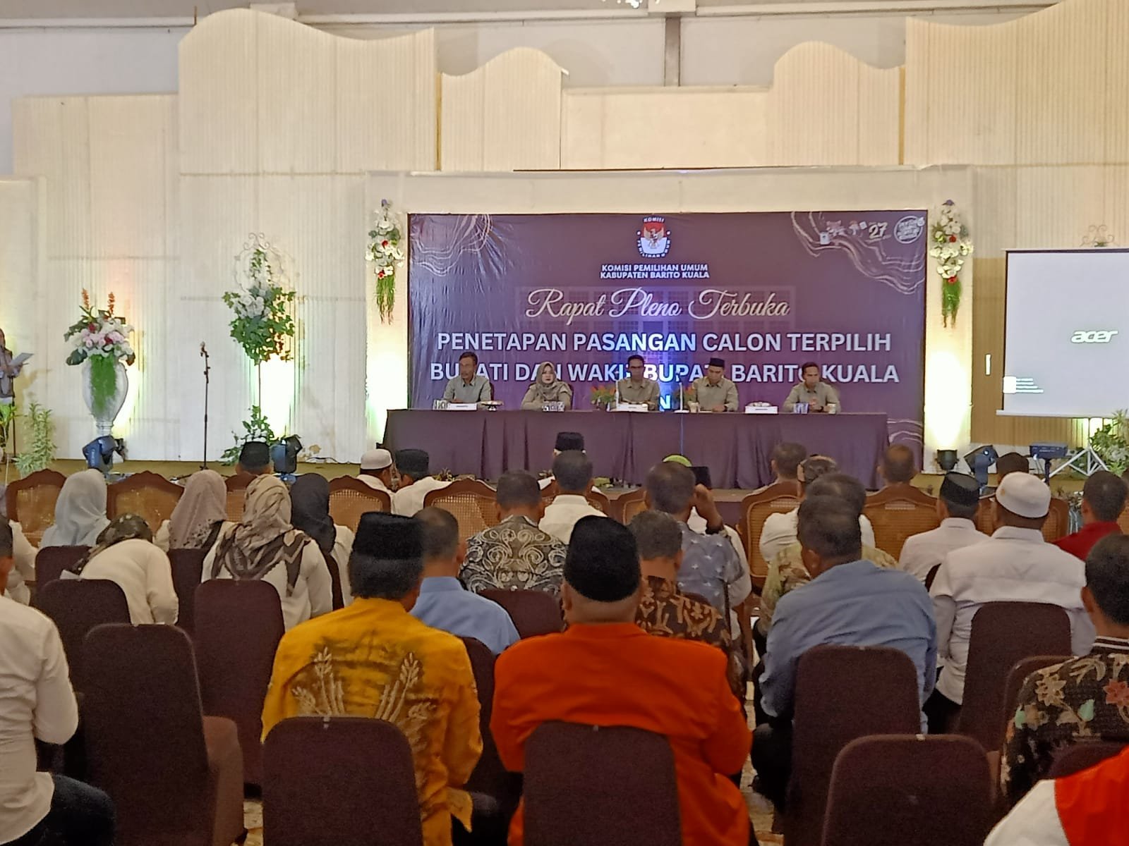Ketua KPU Kabupaten Barito Kuala, Rusdiansyah, SP, menyambut baik kegiatan ini dan berharap dapat berjalan lancar dan sesuai prosedur. “Rapat pleno terbuka ini bertujuan untuk menetapkan pasangan calon terpilih Bupati dan Wakil Bupati Barito Kuala,” Ucapnya.