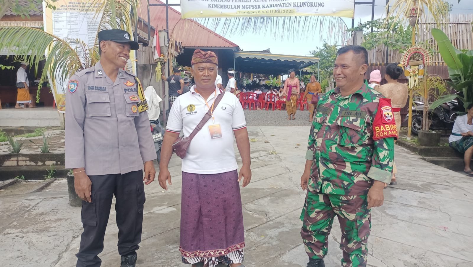 Klungkung,- Babinsa Takmung Serka Yulianta menghadiri sekaligus mengamnakan berlangsungnya upacara Atma Wedana Lan Manusia Yadnya Kinembulan yang digelar Maha Gotra Pasek Sanak Sapta Rsi ( MGPSSR ) Kabupaten Klungkung di Taman Yadnya Dusun Sidayu Tojan Desa Takmung, Kecamatan Banjarangkan, Kabupaten Klungkung, Kamis ( 10/07/25 ).