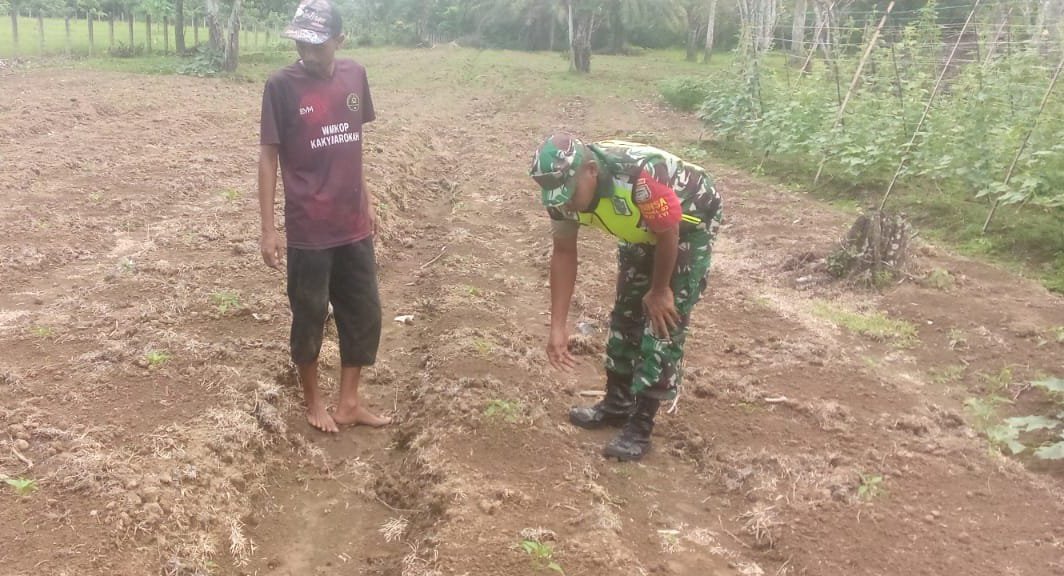 ACEH BARAT – Babinsa Koramil 03/Kaway XVI Kodim 0105/Abar, Serka Dedi, melakukan pemantauan terhadap perkembangan tanaman cabe milik warga di Desa Pasi Ara, Kecamatan Kaway XVI, Kabupaten Aceh Barat. Kegiatan ini merupakan bagian dari upaya mendukung ketahanan pangan di wilayah tersebut. Sabtu (10/05/2025)