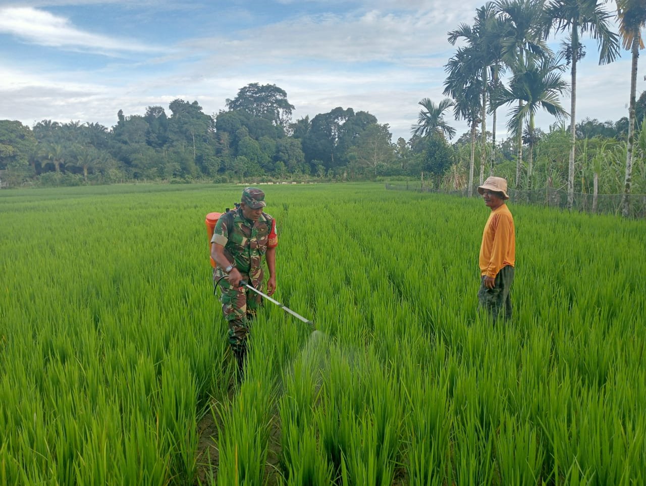 Dengan turun langsung ke sawah, Serda Heriyanto memberikan pendampingan kepada petani untuk memastikan tanaman padi bebas dari hama yang dapat mengganggu produktivitas panen. Selain itu, langkah ini juga menunjukkan peran aktif Babinsa dalam menjaga hubungan yang harmonis dengan masyarakat sekaligus membantu meningkatkan hasil pertanian.