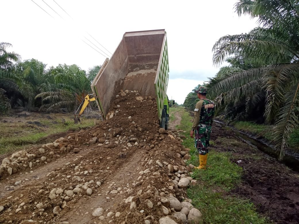 Setiap hari, puluhan rit dump truck mendatangi titik pengoralan, memastikan ketersediaan material tidak menjadi hambatan dalam penyelesaian sasaran fisik TMMD ke-125 Kodim 0428/Mukomuko. Penempatan material juga diatur sedemikian rupa agar mudah diratakan oleh alat berat.