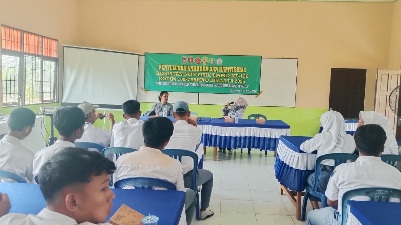 BARITO KUALA – TMMD Ke-126 Kodim 1005/Barito Kuala tidak hanya fokus pada pembangunan fisik, tetapi juga merambah ke ranah pendidikan dan pembinaan generasi muda melalui kegiatan non-fisik. Salah satunya adalah penyuluhan narkoba dan keamanan ketertiban masyarakat (Kamtibmas) yang digelar di SMA 1 Negeri Wanaraya, Selasa (14/10).