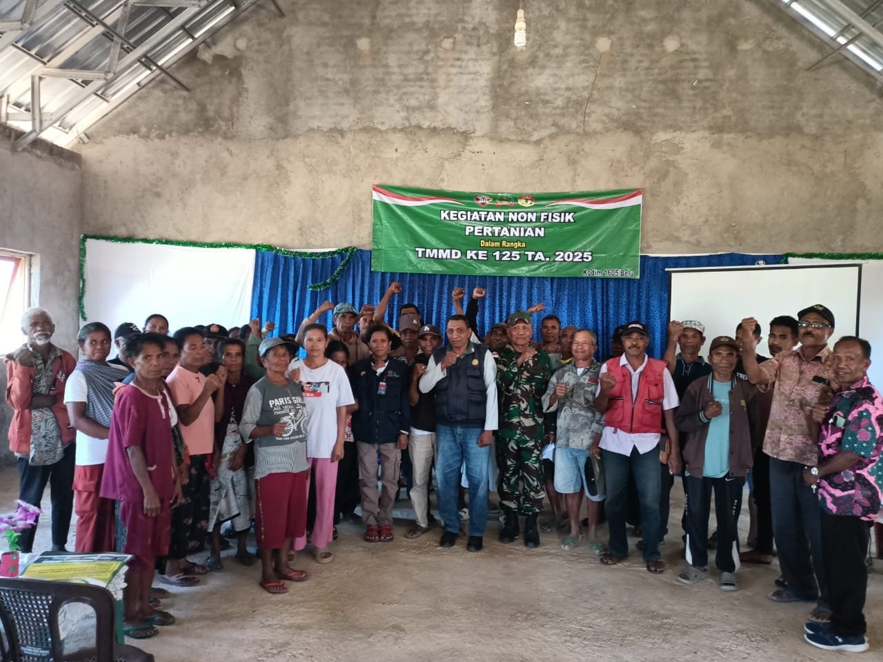 BELU – Program TNI Manunggal Membangun Desa (TMMD) ke-125 Kodim 1605/Belu tak hanya fokus pada pembangunan fisik seperti pembukaan jalan dan infrastruktur pendukung, namun juga memberikan perhatian besar pada pembangunan sumber daya manusia. Salah satunya melalui penyuluhan pertanian yang digelar di Gedung Gereja GBI Maranatha, Dusun Mauulun, Desa Naekasa, Kecamatan Tasifeto Barat, Jumat (15/8/2025).