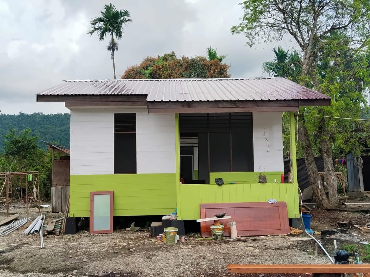 Nabire, 15 Agustus 2025 – Menjelang H-6 penutupan TMMD ke-125 TA 2025, Satgas Kodim 1705/Nabire terus memacu pekerjaan pembangunan Rumah Pastori di Kampung Manunggal Jaya, Legari SP4, Distrik Makimi. Pengerjaan kini memasuki tahap finishing, dengan fokus pada pengecatan, pemasangan plafon, dan pembersihan area sekitar.