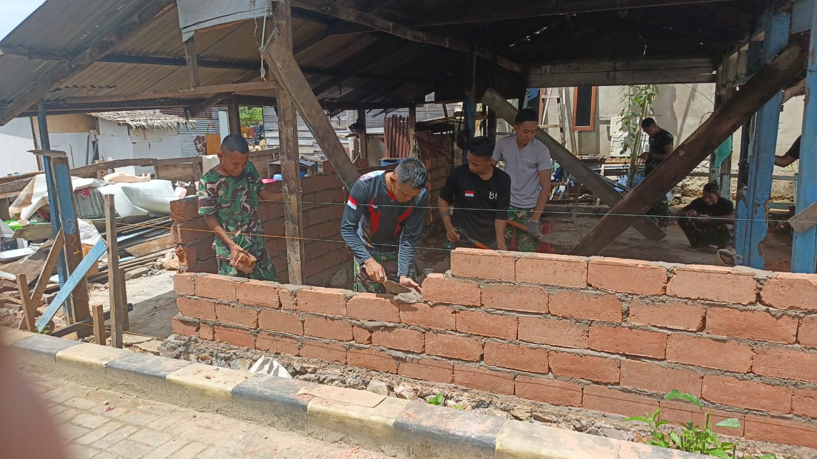Kendari – Satgas TMMD ke-127 Kodim 1417/Kendari terus melakukan upaya rehabilitasi Rumah Tidak Layak Huni (RTLH) di Kelurahan Petoaha, Kota Kendari, pada Senin (23/2). Dalam proses ini, tim TNI telah memasuki tahap penting yaitu pemasangan bata. Para personel terlihat bekerja dengan sangat teliti dan rapi, memperhatikan setiap detail susunan bata untuk memastikan dinding yang dibangun memiliki kekuatan, presisi, serta daya tahan yang baik.