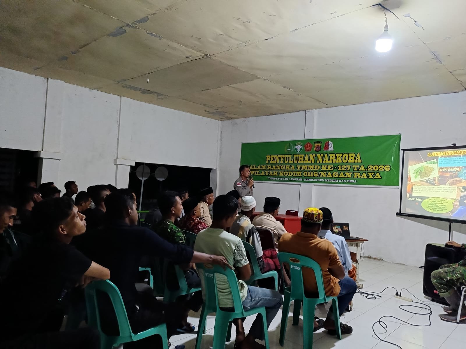 Pada Selasa (24/2/2026) malam, Satgas TMMD Ke-127 Kodim 0116/Nagan Raya melaksanakan penyuluhan bahaya narkoba di Balai Desa Ujong Blang. Kegiatan ini menyasar generasi muda dan masyarakat umum sebagai langkah preventif dalam mencegah penyalahgunaan narkotika di wilayah pedesaan.