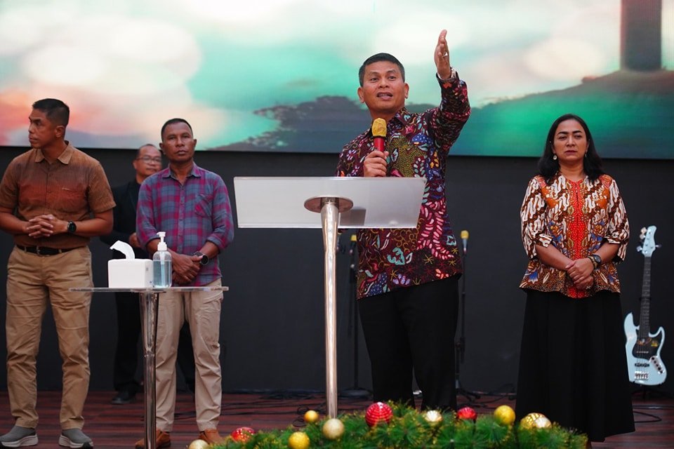Mengawali tahun 2025, Kepala Staf Kodam (Kasdam) XVII/Cenderawasih Brigjen TNI Thevi A Zebua, S.E., M.M didampingi Istri Ny. Rieli Thevi Zebua yang juga merupakan Wakil Ketua Persit Kartika Chandra Kirana Daerah XVII/Cenderawasih bersama rombongan pejabat Kodam kembali menyuarakan pentingnya iman, kasih dan damai, toleransi, persatuan dan kesatuan di Tanah Papua. Seperti halnya disampaikan saat safari ibadah Minggu di Gereja GBI Rock Ministry, Jln. Muspacgo Kelapa Dua Entrop, Jayapura, Papua, Minggu (12/1/2025).