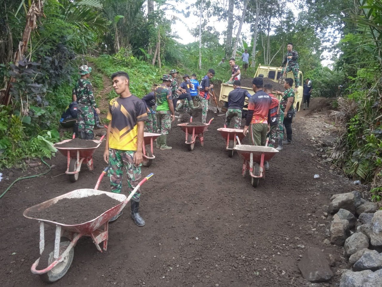 “Alat sederhana seperti gerobak dorong masih menjadi solusi efektif dalam proses distribusi material. Ini juga menjadi bukti bahwa semangat gotong royong tetap hidup di tengah masyarakat,” ungkap Letkol Inf Riza.