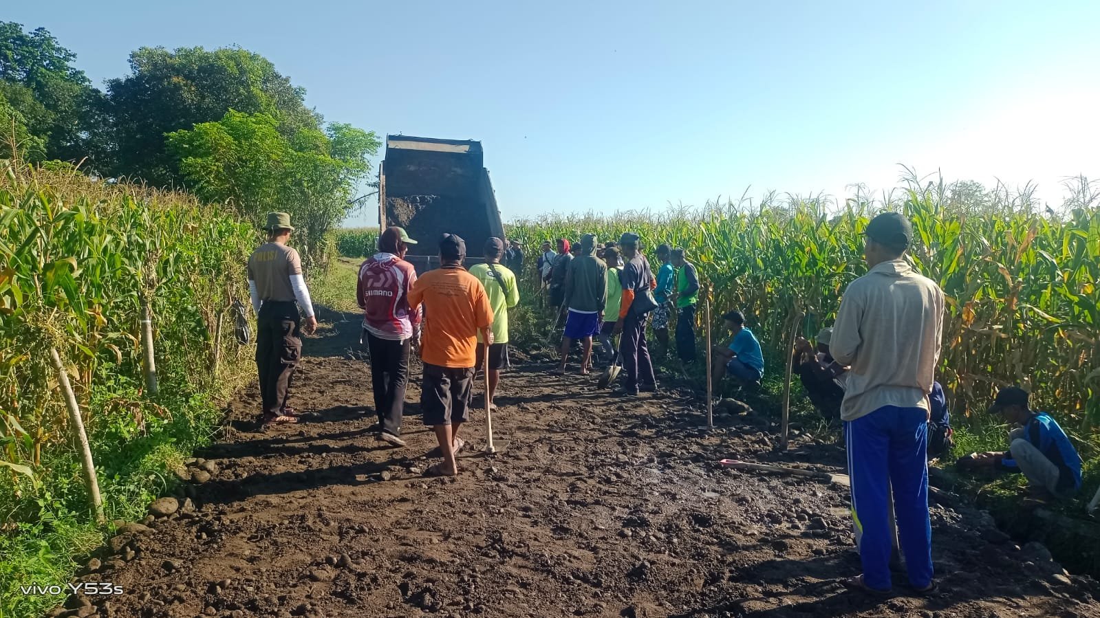 Kegiatan ini menyasar titik-titik jalan yang sebelumnya sulit dilalui karena berlubang dan berlumpur. Dengan penimbunan yang merata, akses distribusi hasil panen warga kini lebih mudah dan cepat.