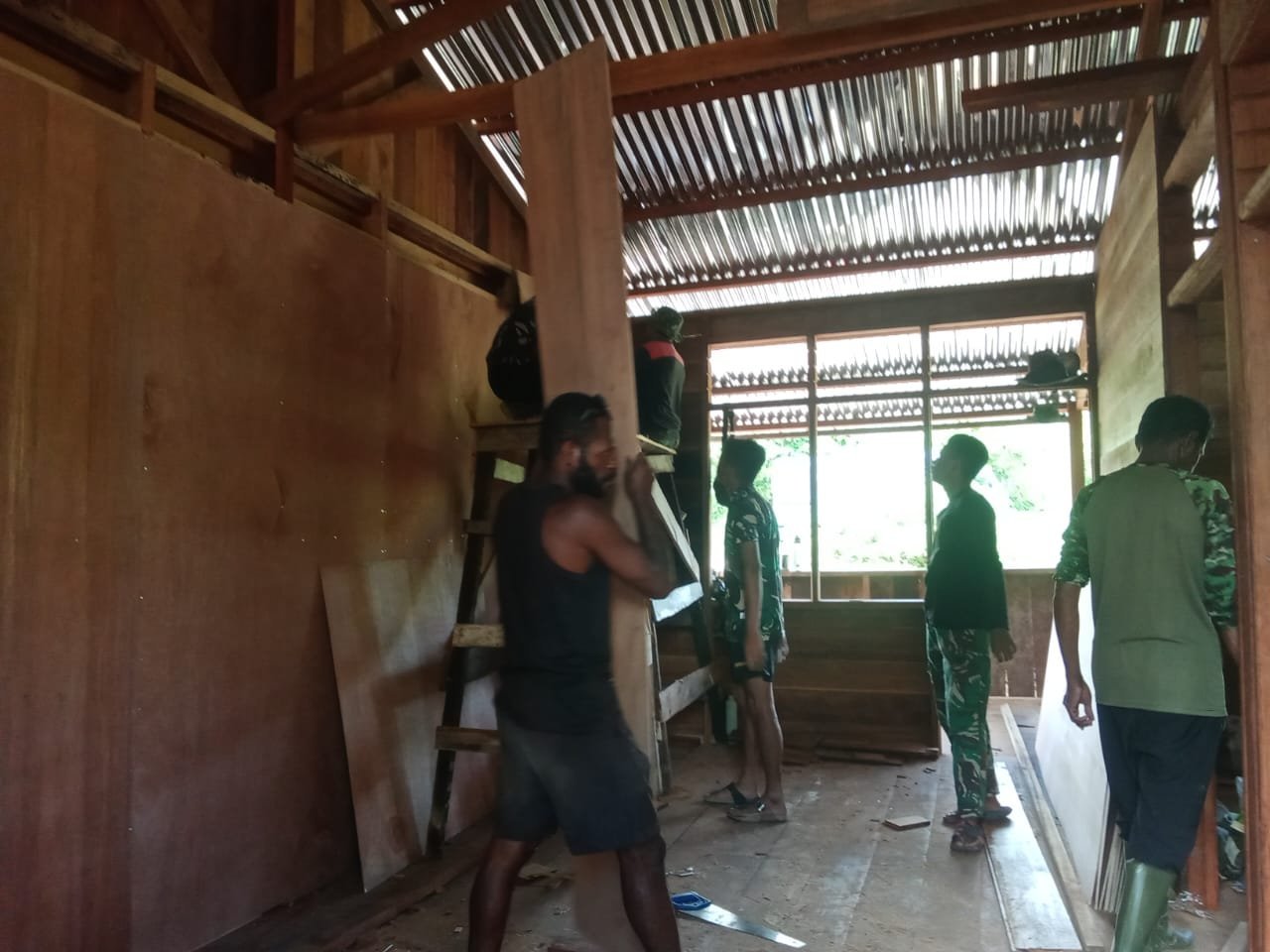 Saat ini, pekerjaan telah memasuki tahap pemasangan dinding dalam rumah dengan tripleks, menandai percepatan pembangunan yang sudah berjalan lebih dari sepekan. Kegiatan ini berlangsung di kawasan Perumahan 100, dengan dukungan penuh dari warga sekitar.