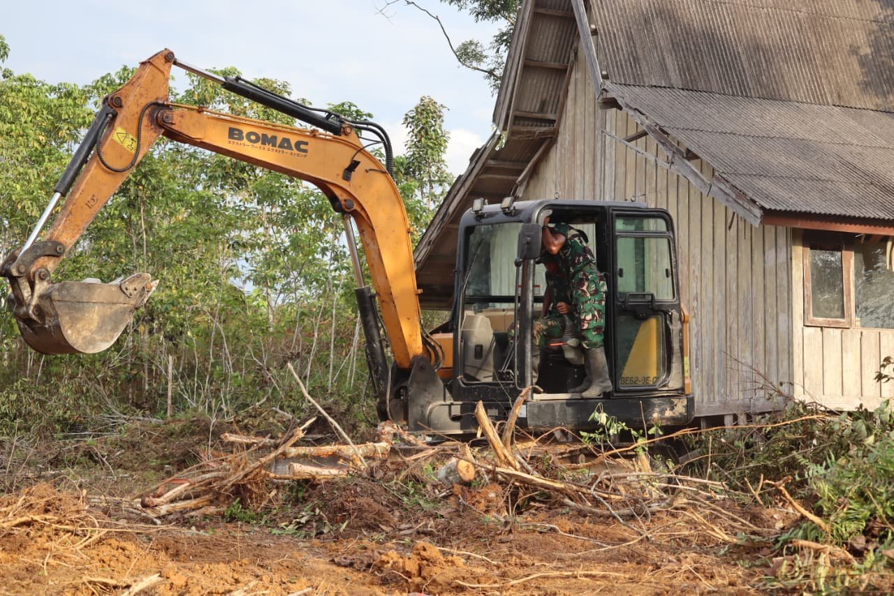 Kegiatan ini merupakan bagian dari program TMMD yang berfokus pada pembangunan sarana dan prasarana masyarakat di wilayah pedalaman. Dengan kondisi medan yang cukup berat dan masih tertutup semak belukar, penggunaan ekskavator menjadi langkah strategis untuk mempercepat proses pembukaan lahan sebelum pembangunan dimulai.