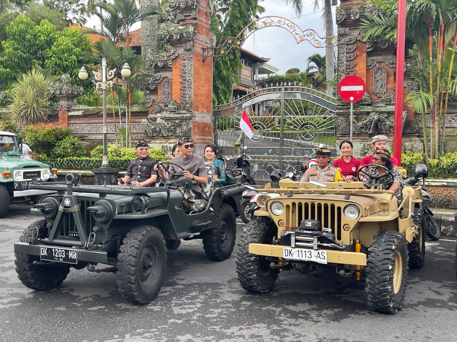 Klungkung,- Kasdim 1610/Klungkung Mayor Cba Ketut Sudiarta mendampingi Bupati dan Wakil Bupati Klungkung menghadiri kegiatan konvoi Mobil Tua Klasik jenis Jeep, Hardtop dan Willys, Sabtu ( 22/11/25 ).