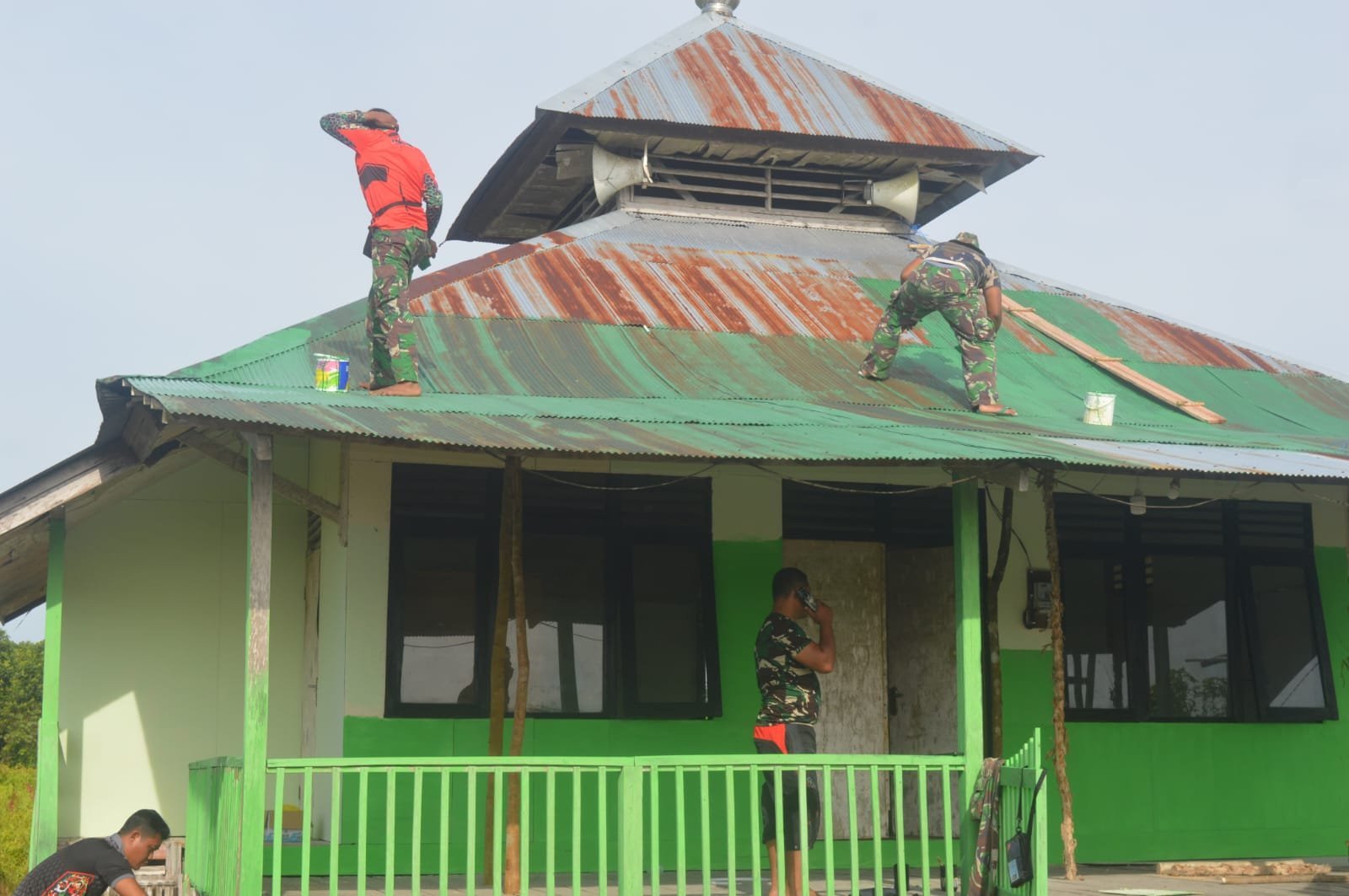 “Mari kita bantu pengecatan musholla ini agar kita mendapatkan pahala dari Allah SWT untuk bekal kita di di akhirat nanti,” tutur Serda Heriansayah, salah satu anggota Satgas TMMD .