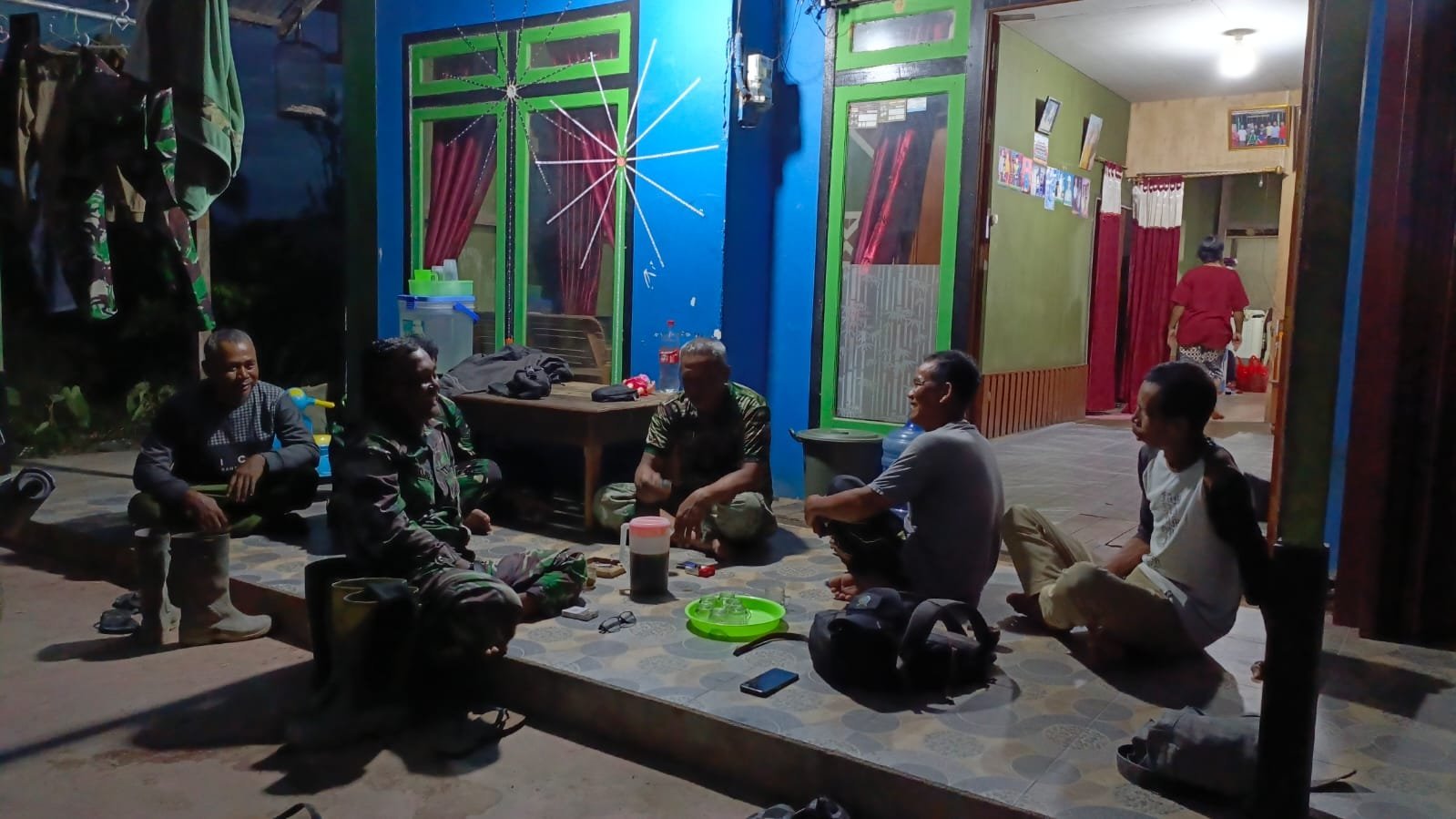 Momen sederhana ini menciptakan suasana hangat penuh kekeluargaan. Duduk bersama dengan secangkir kopi dan obrolan ringan, para prajurit TNI dan warga saling bertukar cerita, mulai dari pembangunan desa hingga kehidupan sehari-hari. Meski tanpa protokol formal, kebersamaan tersebut justru menjadi ruang komunikasi yang efektif dan akrab.