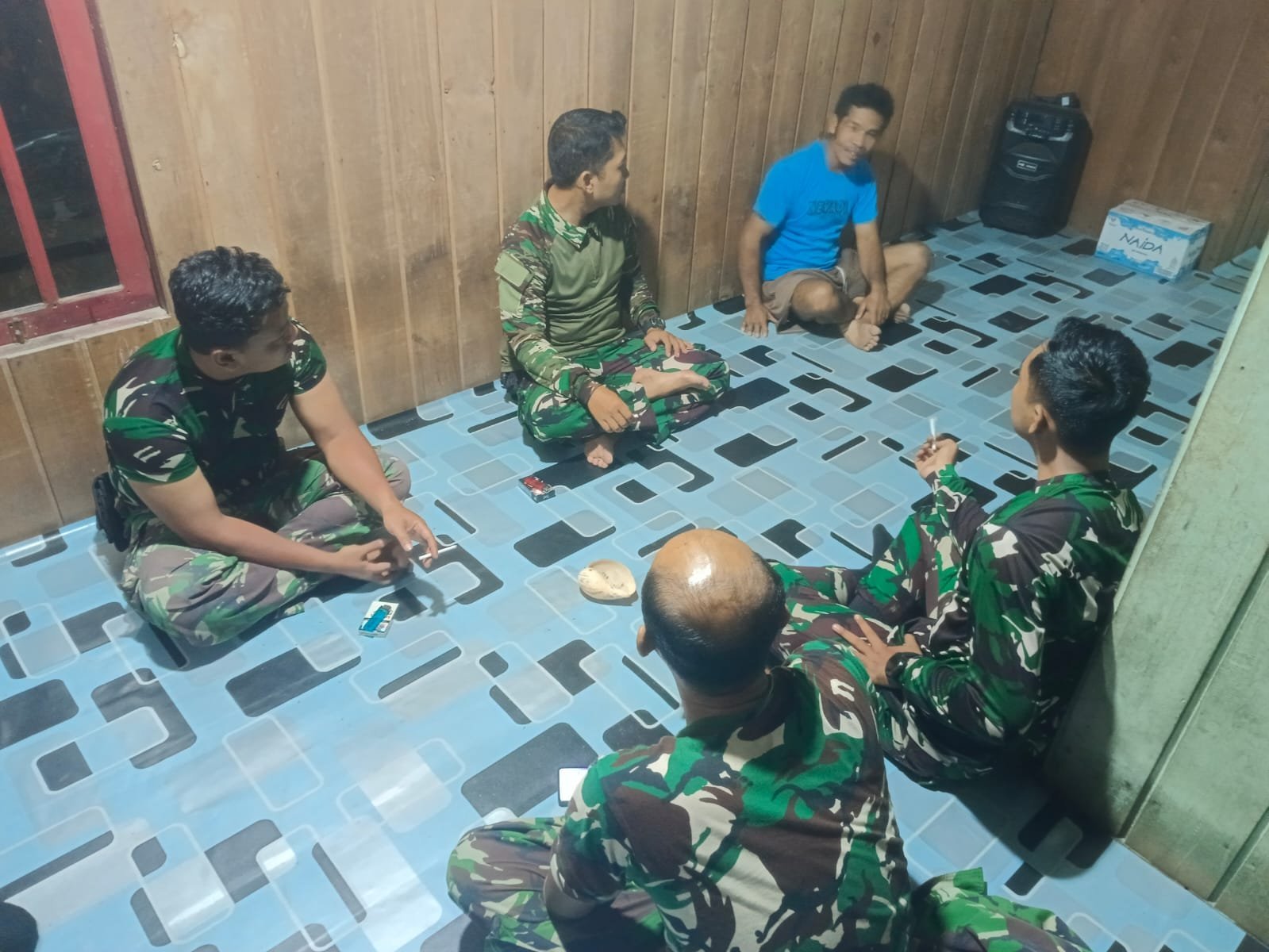 Lamandau – Malam Jum’at (15/08/25) di rumah singgah Desa Batu Kotam, Kecamatan Bulik, Kabupaten Lamandau terasa berbeda. Di tempat sederhana itu, Satgas TMMD Reguler ke-125 Kodim 1017/Lamandau dan warga setempat larut dalam suasana kebersamaan yang penuh kehangatan.