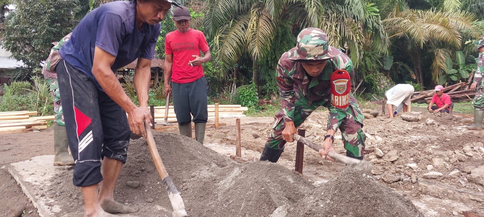 Lubuk Pinang, 26 Juli 2025 — Program TNI Manunggal Membangun Desa (TMMD) ke-125 Kodim 0428/Mukomuko di Desa Sumber Makmur, Kecamatan Lubuk Pinang, memasuki babak baru. Setelah sebelumnya dilakukan pembongkaran rumah-rumah tidak layak huni (RTLH), kini proses pembangunan dimulai dengan pembuatan pondasi rumah.